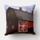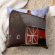 You'll love this great pillow with gorgeous art of a red country barn with white trim and double doors framed by beautiful trees. Oil painting style from artist's original photograph. Green grass, red barn, blue sky in this idyllic image. Image is on two sides. Pillows have a zipper for easy cleaning, too.