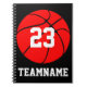 Red Basketball Custom Team & Jersey Number School Notebook