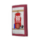 Personalized Red and white basketball jersey hanging in a locker room with a basketball , basketball sneakers and a drinks bottle. The jersey is customizable with your own numbers and name, to create a truly unique gift for the Basketball player or basketball fan. If you require a different color combination contact us via the store