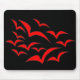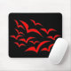 This mousepad features a collection of simple images of bats flying together in a cloud pattern. The bats are red and the background is black. Kids are sure to love this cute design.
