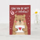 This Valentine’s Day card features a deep ruby red background that sets a warm, romantic mood. At the top, the text reads “CAN YOU BE MY? Valentine?” in white block letters, centered near the upper edge. A soft pink heart-shaped padlock and a matching key sit near the text, hinting at closeness and connection. The main character is a round, light brown bear filling most of the lower part of the card, with small rounded ears, black eyes, and a gentle smile. It has rosy cheeks that make it look a little shy and sweet. The bear holds a white envelope with a bright red heart on the front, like it’s ready to deliver a love note ❤️
