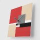 Red Beige Gray Black White Geometric Square Wall Clock