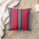 Red & Beige Polka Dots Navy Blue Stripes Pattern Throw Pillow