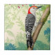 Original fine art painting of a male Red Bellied woodpecker by artist Carolyn McFann of Two Purring Cats Studio printed on a quality and customizable ceramic tile.