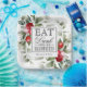 A beautifully festive and elegant holiday themed design with red berries and greenery on a white background designed for weddings, showers, anniversary parties or other events celebrating love during the Christmas or winter season. The whimsical old-fashioned style text invites the couple to "EAT, Drink, and be MARRIED". A text template is included to personalize with the bride and groom's or couple's names. These plates are available in several different sizes in both square and round shapes.