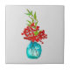 Red Berries in turquoise jar still life painting original art by Sacha Grossel. Colorful and modern watercolor style. Red and green theme.