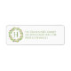 Festive holiday address labels done in white with graphics of a wreath, on the left side with red berries and a single green letter monogram. Personalize the green return address and monogram to suit your needs.