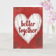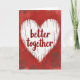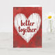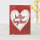 This card shows a soft white heart with a slightly uneven shape, set in the middle of a deep red background. Thin dark red drips run down from the heart’s edges, giving it a dramatic, emotional look. Inside the heart, the words “better together” sit near the center in thick, hand-drawn lettering. The letters are red like the background, with a slightly rough texture that makes them feel real and human. Behind everything, the red backdrop shifts from brighter red to darker wine tones, with a sprayed or washed look across the whole card. The contrast between the pale heart and the rich reds makes the message stand out right away. It feels like a strong note about sticking close and choosing each other, whether it’s romance or a close friendship ❤️❤️