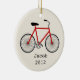 An ornament featuring an illustration of a red bicycle. Personalize with your name under bike.