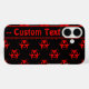 Biohazard symbol phone case in bright red and black with editable text field for easy customization.