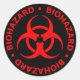 Biohazard - black sticker with bold red lettering and biohazard symbol.