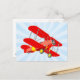 Red Biplane Graphic with Blue Star Burst Postcard