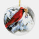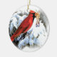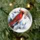 red bird in snow ceramic ornament