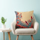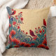 Red Birds, Floral Abstract Folksy Swirls Throw Pillow