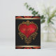 Red, black and gold RSVP with rich red satin heart and red black and gold damask background. This elegant red, black and gold wedding RSVP is easily customized with your event details.