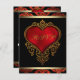 Red, black and gold RSVP with rich red satin heart and red black and gold damask background. This elegant red, black and gold wedding RSVP is easily customized with your event details.