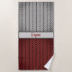 This beach towel has a very masculine look to it. The top is grey and black chevron pattern and the bottom is a reddish rust and black chevron pattern. Separating the two halves is a grey panel where you can personalize it with his name.