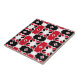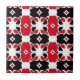 This ceramic tile exudes a sense of timeless elegance with its intricate geometric pattern. The design is symmetrical and mirrors itself both horizontally and vertically, creating a harmonious visual effect. The primary colors used in the design are red, black, and white, which are arranged meticulously to create depth and visual interest. The pattern is dominated by geometric shapes, including diamonds and circles. White shapes resembling four-petaled flowers stand out against the black background, while red diamonds with white borders are centrally placed within the larger geometric patterns. The design is repetitive, adding to the tile’s charm. This tile, with its complex pattern and vibrant colors, can enhance any space, lending it a touch of modern sophistication. It’s a perfect blend of art and functionality.