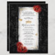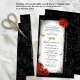 Create your own dramatic and elegant scroll invitations with a luxurious black, white, and red color theme, enhanced by your choice of faux metallic champagne yellow gold or silver details. With this easy, custom template, you can craft elegant DIY scrolls that roll up beautifully—whether you choose to add a dowel, ribbon, or keep it simple for a refined medieval or storybook-inspired look. Featuring original artwork by Raphaela Wilson, the fairy tale design includes red watercolor roses, whimsical gold or silver butterfly confetti, a regal queen’s crown / princess tiara, and an intricate filigree border.