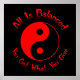 All Is Balanced - You Get What You Give - black poster with red lettering and yin yang symbol.