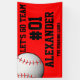 Cheer on your team with this Red Black Baseball Team Banner. Personalize with your athlete's number and name, and the name of the team. You can even change the message. Show off your team spirit this summer.