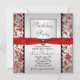 Red & Black Bow Tie Damask Birthday Party Invitation