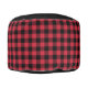 Rustic red and black buffalo check pattern runs around the side. The solid black top and bottom each feature a red custom monogram in the center. Personalize it with your initial in the sidebar. The lumberjack plaid is made of red, black, and dark red squares.
