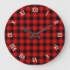 Red Black Buffalo Lumberjack Check Plaid Pattern Large Clock
