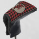 The background on this unique putter cover is a red and black buffalo plaid pattern. At the center is a tan circle banner with a matching red and black plaid silhouette bear. Be sure to see the matching golf club head covers in our store.