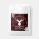 The product design features a silhouette of a reindeer on a classic red and black buffalo plaid pattern. Combined with your own personalized text, this composition makes rustic, modern, and unique Christmas holiday homemade treat bags.