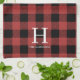 Red Black Buffalo Plaid Monogram Holiday Kitchen Towel