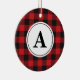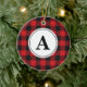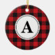 Red Black Buffalo Plaid Monogrammed Ceramic Ornament