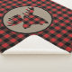 This attractive rustic sherpa blanket features a red and black buffalo plaid pattern. At the center is a tan circle banner with a matching red and black plaid silhouette moose head.
