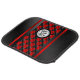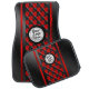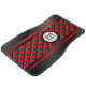 Add a touch of racing flair to your vehicle with this striking set of car mats. Featuring a bold red and black checkered pattern down the center, flanked by sleek racing stripes, these mats exude a sporty and dynamic vibe. The central circular area is designed to prominently display your personal logo or brand, making it a unique addition to any car interior. Perfect for car enthusiasts who appreciate a blend of style and personal expression, these mats will not only protect your floors but also elevate your driving experience with their energetic design. Infuse your ride with the spirit of the racetrack and let your personality shine through with these eye-catching floor mats.
