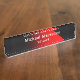 The product was just like it was in the pics, everyone at work loves it! Came on time and it was neatly packed. Bold and Clear. My name can be seen from far and it matches in color.
