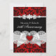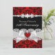 Red Black Damask Heart Bow 25th Anniversary Invitation