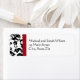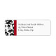 Damask return address labels, with a red ribbon accent. Customize to edit text for wedding favors and thank you gifts.
