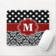 Show off your personal style in a fun way with this red and black dots and damask monogram mousepad.