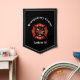 Handsome vertical wall banner features red fire department logo with custom white text on black background