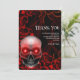 Black floral dark moody gothic skull red roses - scary and spooky Halloween Wedding Thank you card.
