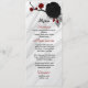 beautiful red and black flowers with gray leaves on gray marble background botanical wedding menu.