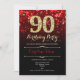 Red Black Gold 90th Birthday Invitation