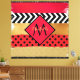 Red Black Gold Glitter Brush Stroke Monogrammed design.