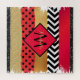 Red Black Gold Glitter Brush Stroke Monogrammed design.