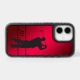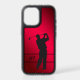 Here is a great phone case for the golf fan, with the back featuring a black silhouette golfer in full swing. At the bottom is your monogram framed by thin black lines. The text and image are placed on a gradient bright red background. Classy, with tough protection for your phone!