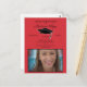 Red graduation party invitation photo postcard with a black graduation cap.