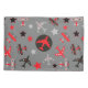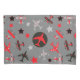 This bright and colorful kids pillow case has red, black, and gray airplanes flying all over it! There are two styles of planes in different patterns and colors. Among the planes are red, black, and gray stars. At the center is a red airplane framed in a black circle. Everything is placed on a medium gray background. Any boy who loves planes and flying will love this pattern, and there are blankets and other products to match!