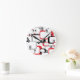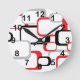 Red Black Gray White Retro Squares Pattern Round Clock