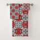 Red Black Grey and White Repeat Tile Pattern Bath Towel Set