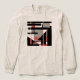 Featured is a geometric, abstract design in shapes and lines of red, black, and grey in a contemporary nod to the Mid-Century Modern design style. Pictured here on an "oatmeal" long-sleeved Tri-Blend t-shirt in Classic Printing, with other styles and colors available.